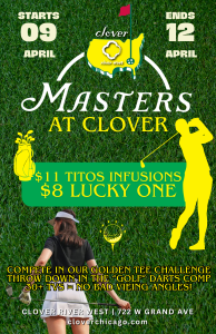 Clover River West is your home for Masters weekend—featuring drink specials, competitive games, and unbeatable viewing from every angle. Bring your crew and see if your short game is as strong as your drink game.